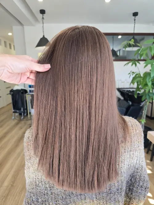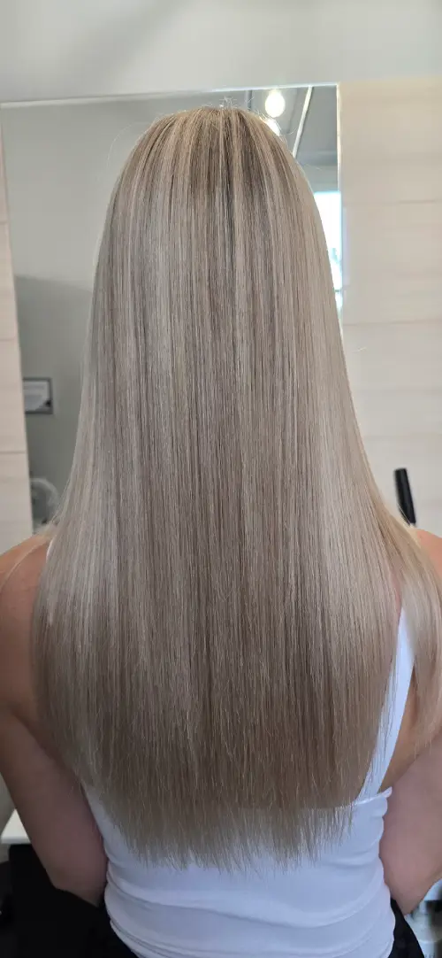Zabieg pozwala na wyrównanie różnicy między odrostem a resztą włosów. Pełne pokrycie siwizny i naturalne przejście.